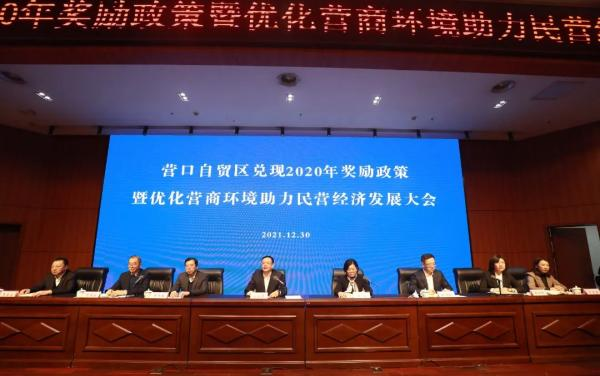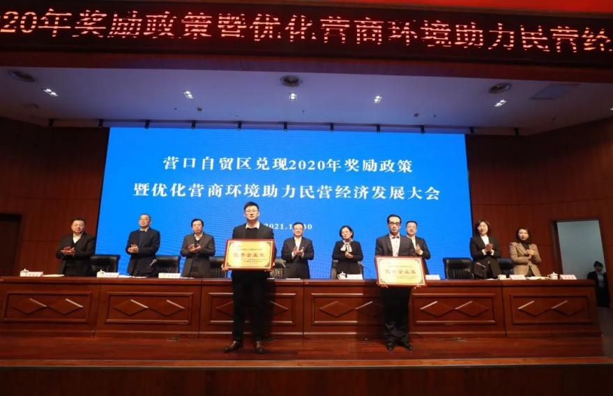 2021年12月30日,我公司參加了由營(yíng)口自貿(mào)區(qū)黨工委、管委會(huì)召開的“兌現(xiàn)2020年獎(jiǎng)勵(lì)政策暨優(yōu)化營(yíng)商環(huán)境助力民營(yíng)經(jīng)濟(jì)發(fā)展大會(huì)”,參會(huì)的人員有自貿(mào)區(qū)黨工委、管委會(huì)領(lǐng)導(dǎo)班子成員、管委會(huì)各部門負(fù)責(zé)人、國(guó)企公司、各派駐機(jī)構(gòu)代表以及獲獎(jiǎng)企業(yè)代表,共計(jì)100余人。