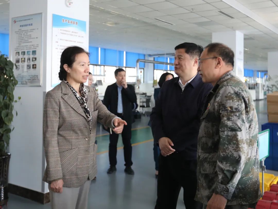 省領導詳細查看了公司智能化生產車間、試驗檢測中心、省創(chuàng)新工作室、公司展廳及黨建活動中心、職工食堂等部門,現(xiàn)場了解生產設備、工藝和生產流程、詢問企業(yè)經營效益、產品銷售、品牌效應等情況,詳細了解公司主要研發(fā)項目和產品在民用市場的應用推廣,以及有關服務平臺的建設和資源共享情況。并特別關注了公司人才隊伍建設、補貼政策落實等情況。